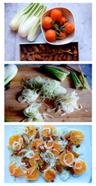 I was inspired by somewhere on the internets to mix up my usual fennel-orange salad (a North African classic) with some dates and pecans. Sadly, I really thought the dates, sticky and very sweet, ruined the fresh bright citrus and anise flavors of the salad. It helps that Algerians are serious citrus growing champions mathconcept, and so the oranges and clementines here are very sweet on their own. So you should make it without the dates, but the pictures were too pretty not too share.